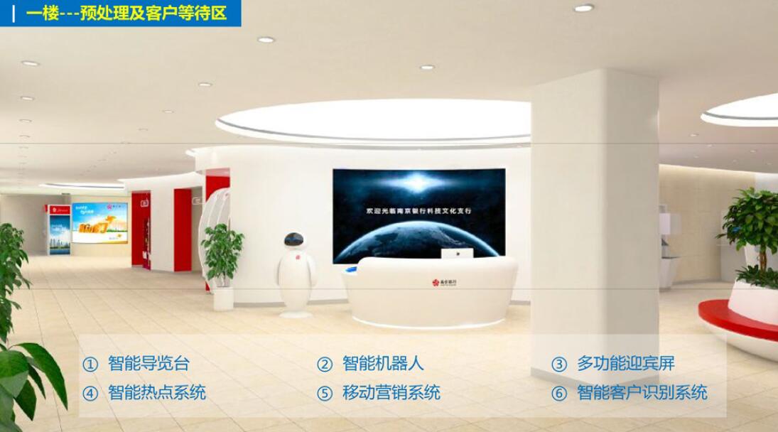 2、迎賓機(jī)器人:具備人臉識(shí)別,軟件后臺(tái)將客戶資料錄入后,客戶來訪,機(jī)器人會(huì)自動(dòng)識(shí)別該客戶在銀行預(yù)留的信息,并將信息實(shí)時(shí)傳遞給迎賓工作人員;