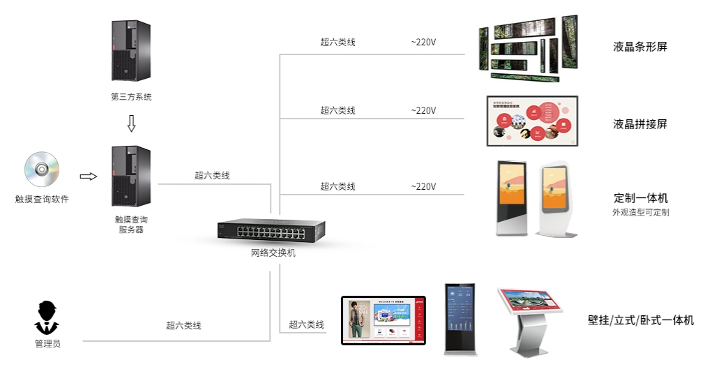可在指定時(shí)間段提供觸摸查詢功能,也可以在午休等空閑時(shí)間播出廣告內(nèi)容,做到一屏多用。