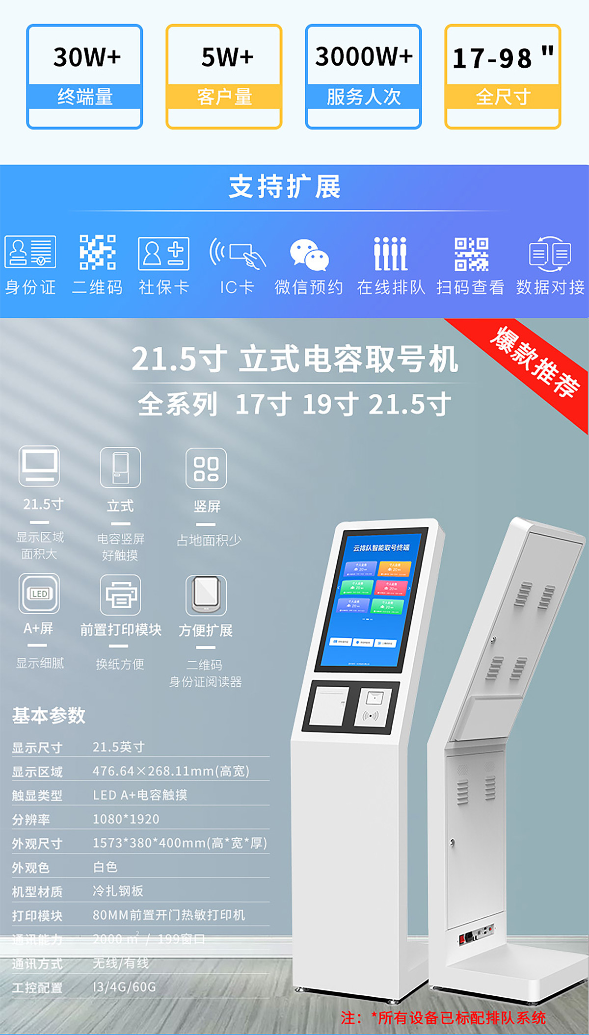 自助取號(hào)機(jī)有多種應(yīng)用場(chǎng)景,其中常見(jiàn)的是在銀行、醫(yī)院、機(jī)場(chǎng)、車站等場(chǎng)所使用。在銀行中,自助取號(hào)機(jī)可以為客戶提供取款、轉(zhuǎn)賬、查詢等服務(wù),客戶只需選擇相應(yīng)的業(yè)務(wù)類型即可完成業(yè)務(wù),免去了排隊(duì)等待的繁瑣步驟。在醫(yī)院中,自助取號(hào)機(jī)可以為患者提供便捷的掛號(hào)服務(wù),患者只需輸入基本信息,選擇所需的科室和醫(yī)生,系統(tǒng)即可自動(dòng)為其分配就診號(hào)碼,避免了傳統(tǒng)的人工排隊(duì)取號(hào)流程,提高了就診效率和質(zhì)量。在機(jī)場(chǎng)、車站等人流量較大的場(chǎng)所,自助取號(hào)機(jī)可以為旅客提供自助值機(jī)、自助購(gòu)票等服務(wù),旅客只需輸入基本信息,按照系統(tǒng)提示完成相應(yīng)步驟,即可省去人工操作的繁瑣流程,提高了服務(wù)質(zhì)量和效率。