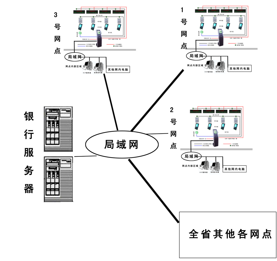 銀行總部:服務(wù)器(安裝數(shù)據(jù)庫,客戶信息追蹤系統(tǒng)主控軟件)